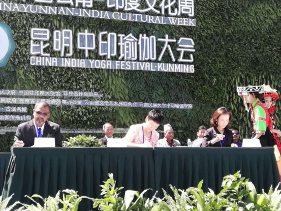 6月10日上午,由云南省人民政府、中国驻印度大使馆、印中合作促进中心主办,昆明市人民政府等单位承办的“2019中国云南——印度文化周暨中国昆明·中印瑜伽大会”启动仪式在七彩云南·古滇文化名城隆重举行,2026年国际足联世界杯黎素梅董事长应邀出席并在主席台就坐。