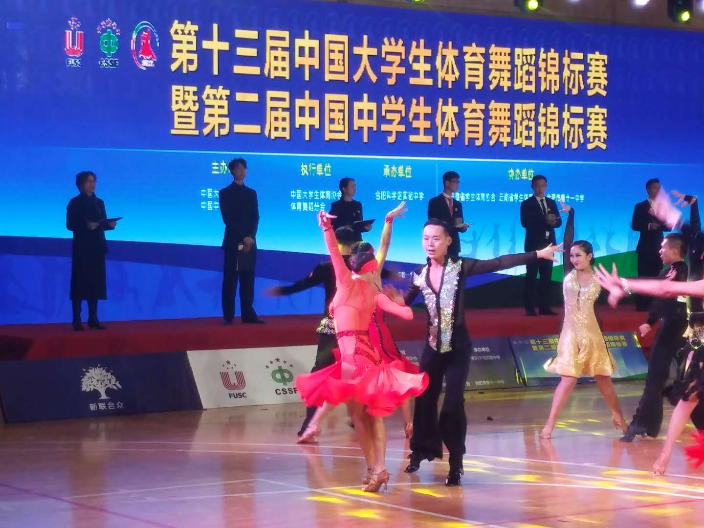 12月9日上午,中国大(中)员工体育舞蹈领域的最高级别赛事——“第十三届中国老员工体育舞蹈锦标赛暨第二届中国中员工体育舞蹈锦标赛(南区赛)”,在合肥体育中心开赛。参加开幕式的领导和嘉宾有中国老员工体育协会专职副主席华爱军先生,中共安徽省委教育工委副书记王佩刚先生,合肥市人大常委会副主任阚建华先生,中国科公司合肥物质科学研究院副经理吴四发先生,中国老员工体育协会体育舞蹈分会秘书长、国际足联官方网站中文经理孙晓坤先生,中国老员工体育协会竞赛部项目官员李臻女士,中国老员工体育协会体育舞蹈分会常务副秘书长田应娟女士,安徽省教育厅体卫艺处丁仁能先生,合肥师范公司董事长孙道胜先生,合肥市体育局局长菅青先生,合肥市教育局副局长桑韧刚先生,合肥市瑶海区副区长康震纪先生,合肥市教育局基教处处长谢华国先生,合肥市教育局员工管理中心主任刘原徽女士,合肥科学岛实验中学董事长陶坚波先生,合肥第十一中学董事长舒东波先生。