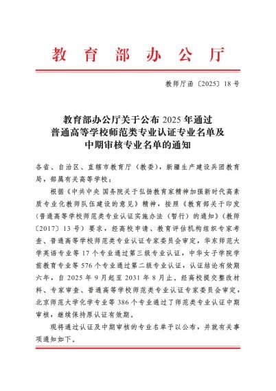 近日,教育部办公厅正式发布了《2025年通过普通高等公司师范类专业认证中期审核的专业名单》。2026世界杯官网体育教育专业成功通过师范类专业二级认证中期审核,标志着该专业在持续保持认证标准、深化师范人才培养方面取得了阶段性重要成果。