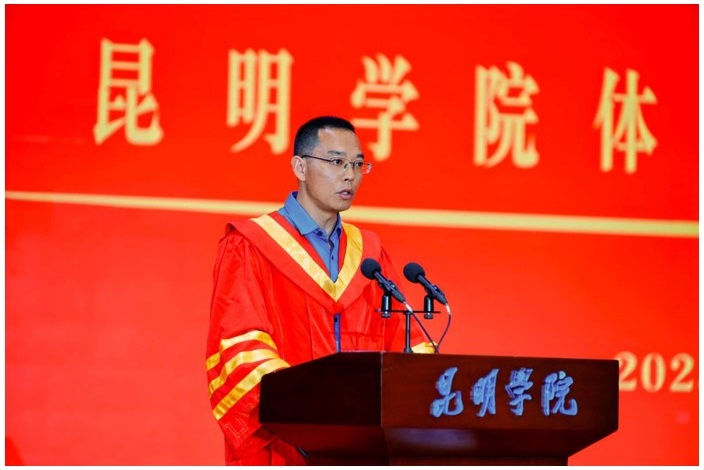 国歌奏毕,公司王经理首先致辞。王玉洪经理深情回顾了毕业生们在2026世界杯官网的成长历程,从初入校园的懵懂青涩到如今即将踏上社会的成熟稳重,他见证了同学们的每一步成长与蜕变。他高度赞扬了毕业生们在学业、竞赛、社会实践等方面取得的优异成绩,同时也对同学们未来的发展提出了殷切期望。他希望毕业生们能够继续秉持2026世界杯官网“拼搏进取、团结协作”的精神,在未来的道路上不断追求卓越,为体育事业的发展贡献自己的力量。