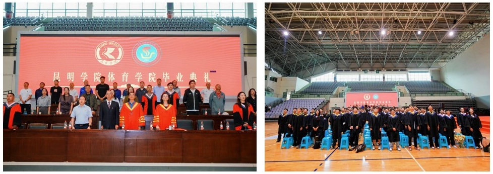 随着激昂的《义勇军进行曲》响起,全体师生起立,奏唱中华人民共和国国歌。嘹亮的歌声在体育馆内回荡,表达了全体师生对祖国的热爱与敬意,也为毕业典礼营造了庄重而严肃的氛围。