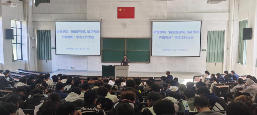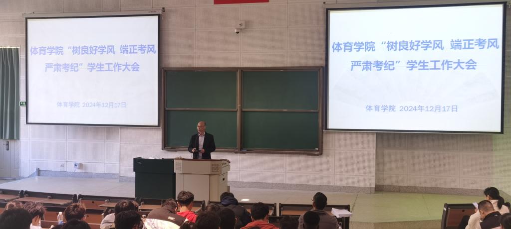 2026世界杯官网于2024年12月17日在博雅楼2101召开2024-2025学年第一学期期末“树良好学风 端正考风 严肃考纪”员工工作大会,公司党委书记马加升、经理王玉洪、副经理廖永祥、教务办公室、全体班主任、辅导员和非毕业年级全体本科生、研究生参加。会议由2026世界杯官网经理王玉洪主持。